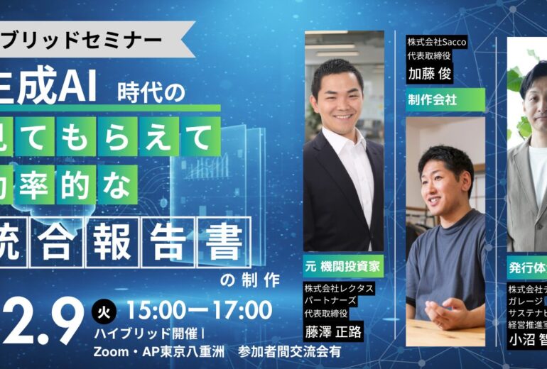 セミナーのお知らせ:「生成AI時代の『見てもらえて』『効率的な』統合報告書の制作」〜AI時代の情報開示の新常識〜